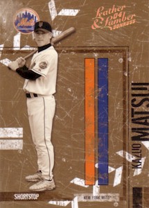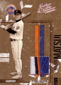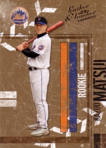 Donruss社からのThrowback Threadsシリーズで左から1000枚限定、100枚限定、10枚限定の3種類。さらにこのシリーズには25枚限定カードも存在します。 <2004 Donruss Throwback Threads Rookie #239> On April 6, 2004 at Atlanta, Matsui became the third Mets player to homer in his first Major League at-bat, the first player since 1938 to hit his first home run leading off on opening day, and the first since Dwight Evans in 1986 to go deep on the first pitch of the season. |
